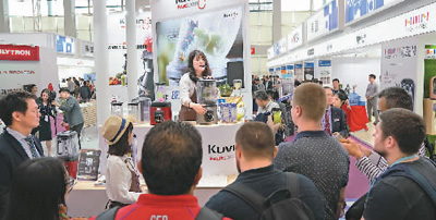 4月15日,在第123届广交会进口展区,来自韩国的企业在推销一款果汁机。新华社记者 梁旭摄 4月10日,中国国家主席习近平出席博鳌亚洲论坛2018年年会开幕式并发表主旨演讲。习近平主席宣布中国在扩大开放方面将采取的重大举措。习近平指出,中国不以追求贸易顺差为目标,……